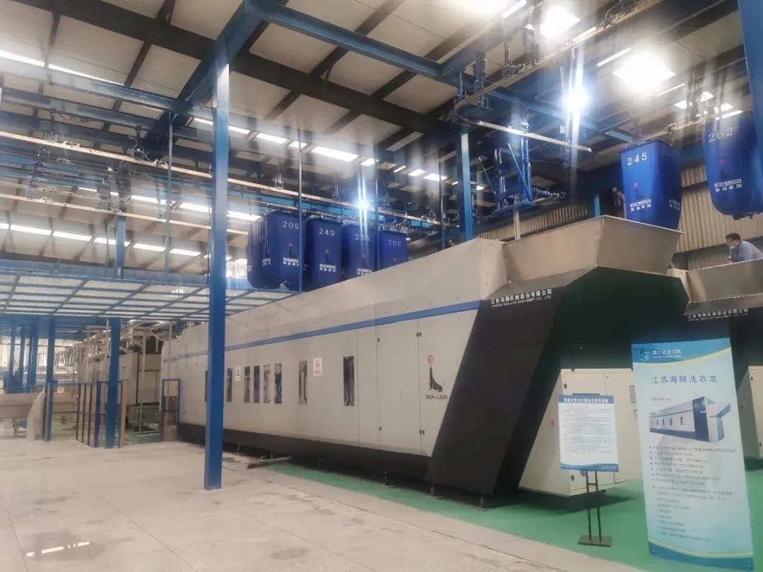 工廠采用了海獅先進的洗衣龍、吊袋等設備,簡化流程,增強洗滌質量,實現(xiàn)布草抑菌、洗滌100%達到國家安全指標,布草服務過程100%可溯源,確保每一批布草干凈整潔,保障每一位用戶的健康安全。