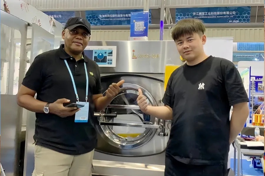 在已圓滿結(jié)束的第一期“先進制造”主題展會中,江蘇海獅機械股份有限公司作為工業(yè)洗滌機械領(lǐng)域的領(lǐng)軍企業(yè),積極參與了本屆廣交會,并向海內(nèi)外參會者展示了海獅產(chǎn)品的精湛工藝和卓越品質(zhì),贏得廣泛贊譽。曾經(jīng)購買過海獅設(shè)備的老客戶,此次也特意前來參觀。他們紛紛表示,海獅機械的產(chǎn)品質(zhì)量過硬、節(jié)能效果顯著,即使在當?shù)貒揽恋臍夂颦h(huán)境下,海獅的水洗機、烘干機、洗衣龍系統(tǒng)、后整理設(shè)備都能保持穩(wěn)定運行,交出滿意的工作表現(xiàn)。